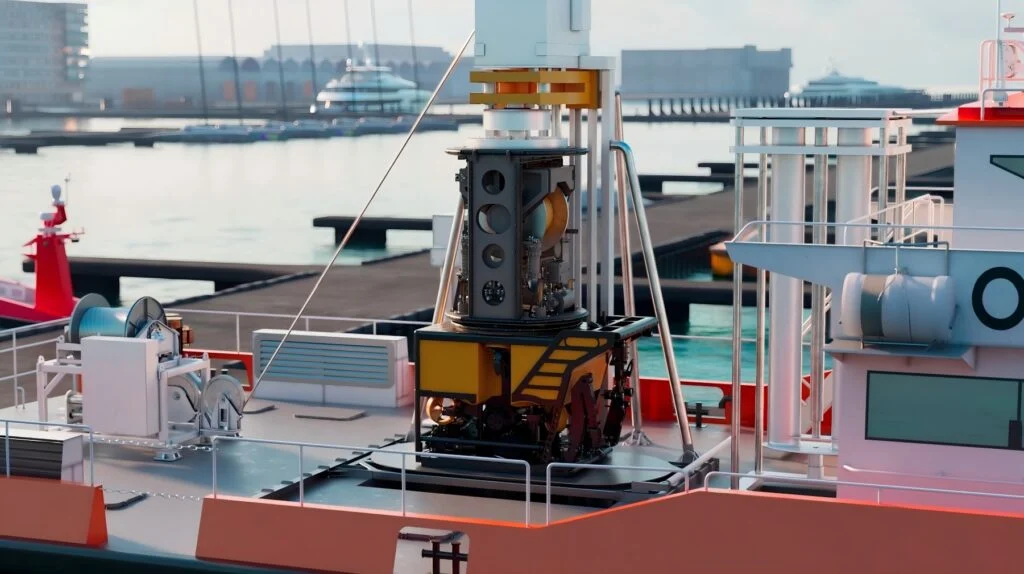 這套無人平台將一艘具備 DP2 動態定位能力的 24 公尺級離岸無人水面艇,與一具重達 2 噸的工作級遙控潛水器整合為一體。系統專為水下巡檢、維護與修復(IMR)任務而設計,作業深度可達 3,000 公尺。